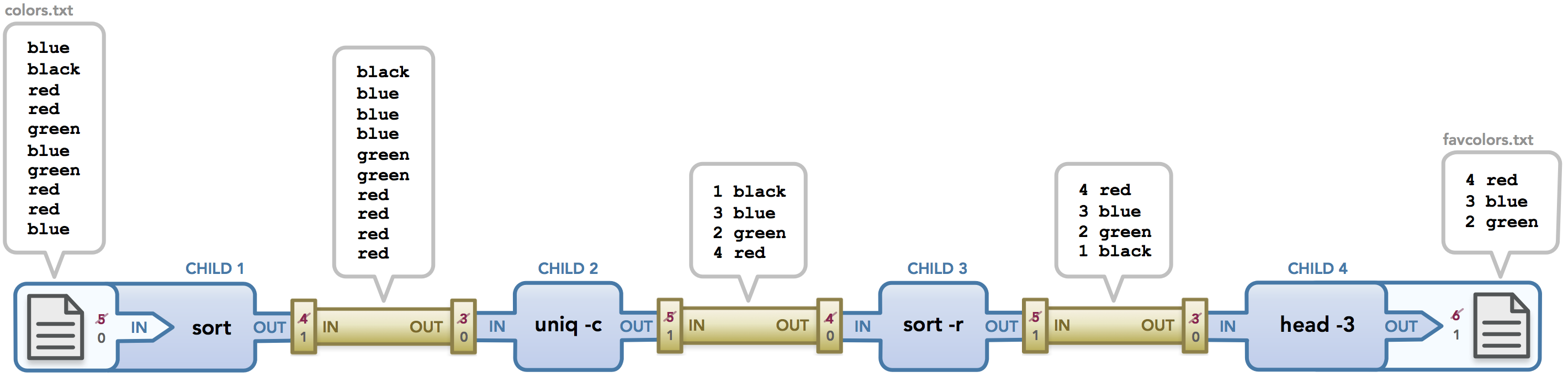 命令1的stdout保存到文件中,并作为命令2的stdin。 - 其原理如下: