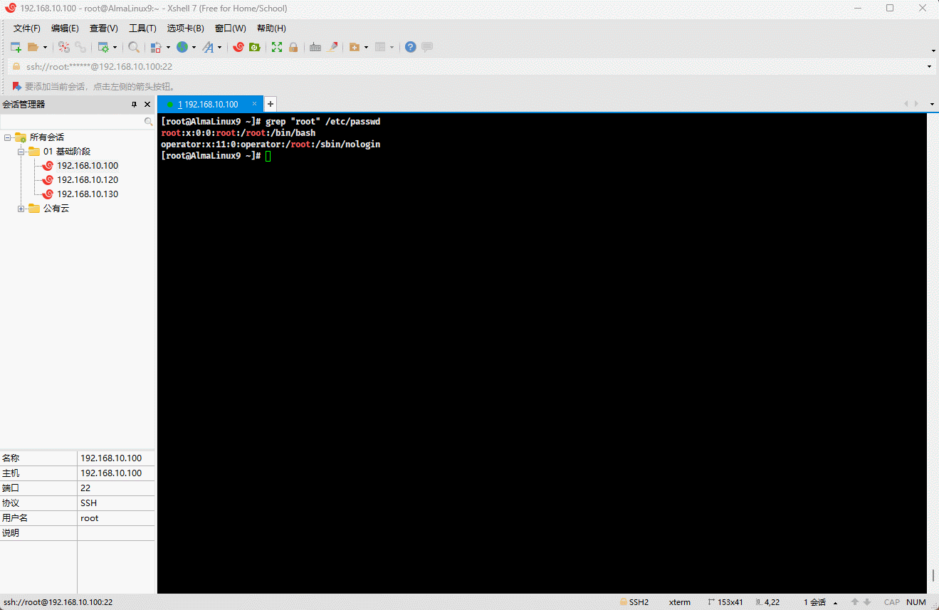 - 示例:从 /etc/passwd 文件中查找包含 root 的行。