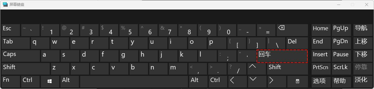 键盘上的Enter在这里,如下所示: