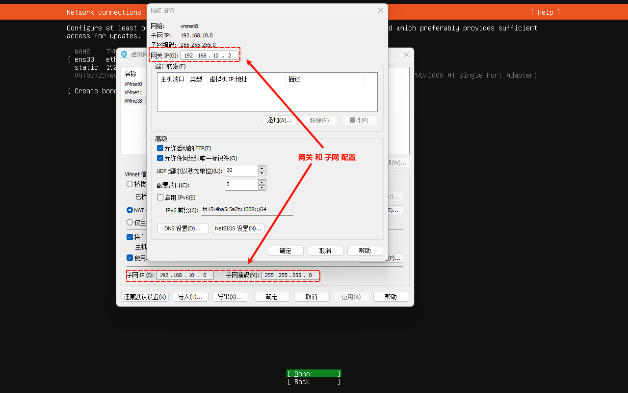 本人的网关和子网配置如下:
