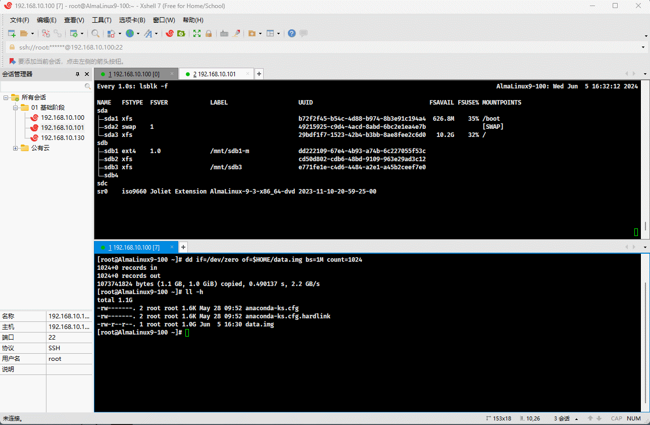 - 示例:将该文件远程发送到其它系统中,并挂载到指定目录,再查看